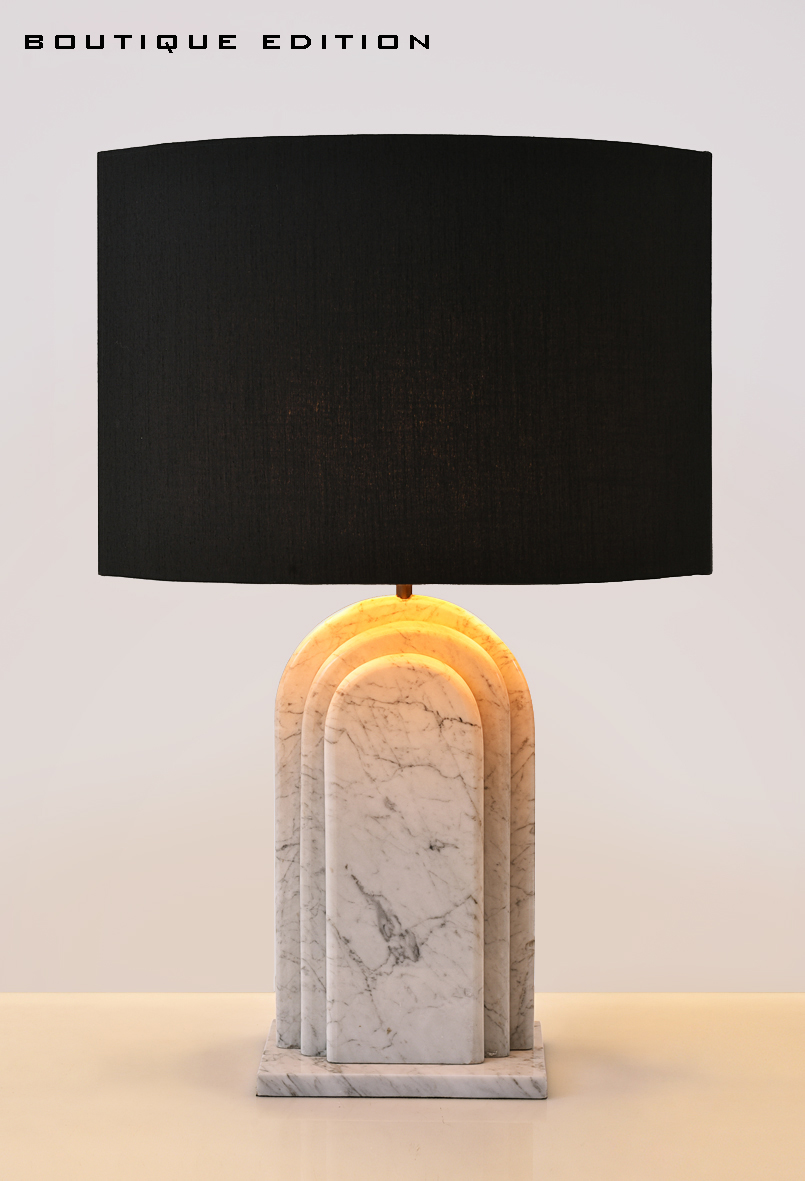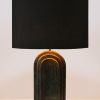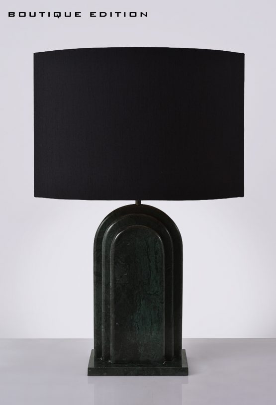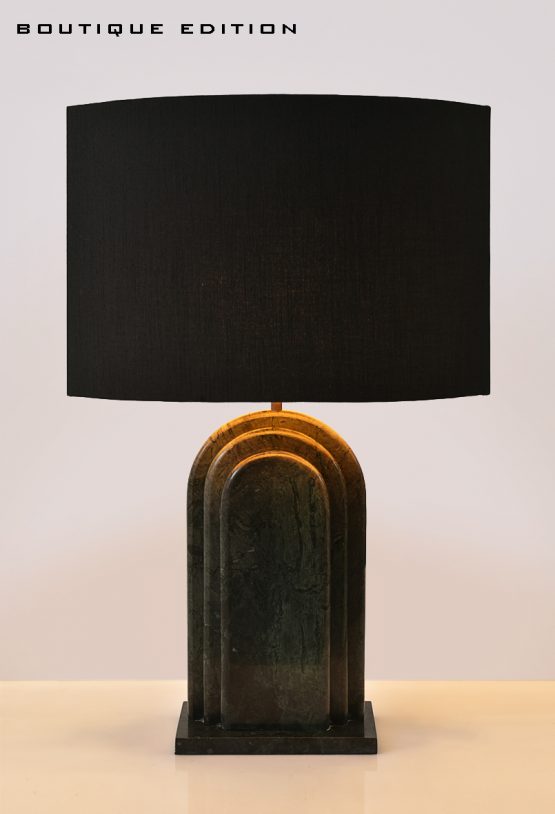 A beautiful and eye-catching green and white marble table lamp that will bring a sense of elegance to any setting. The stand is composed of five layers of marble, paired with a black linen shade and accented with delicate brass details, this lamp can sit comfortably in any location and is suitable for a variety of decor styles ranging from traditional to contemporary.