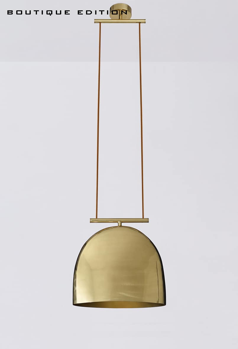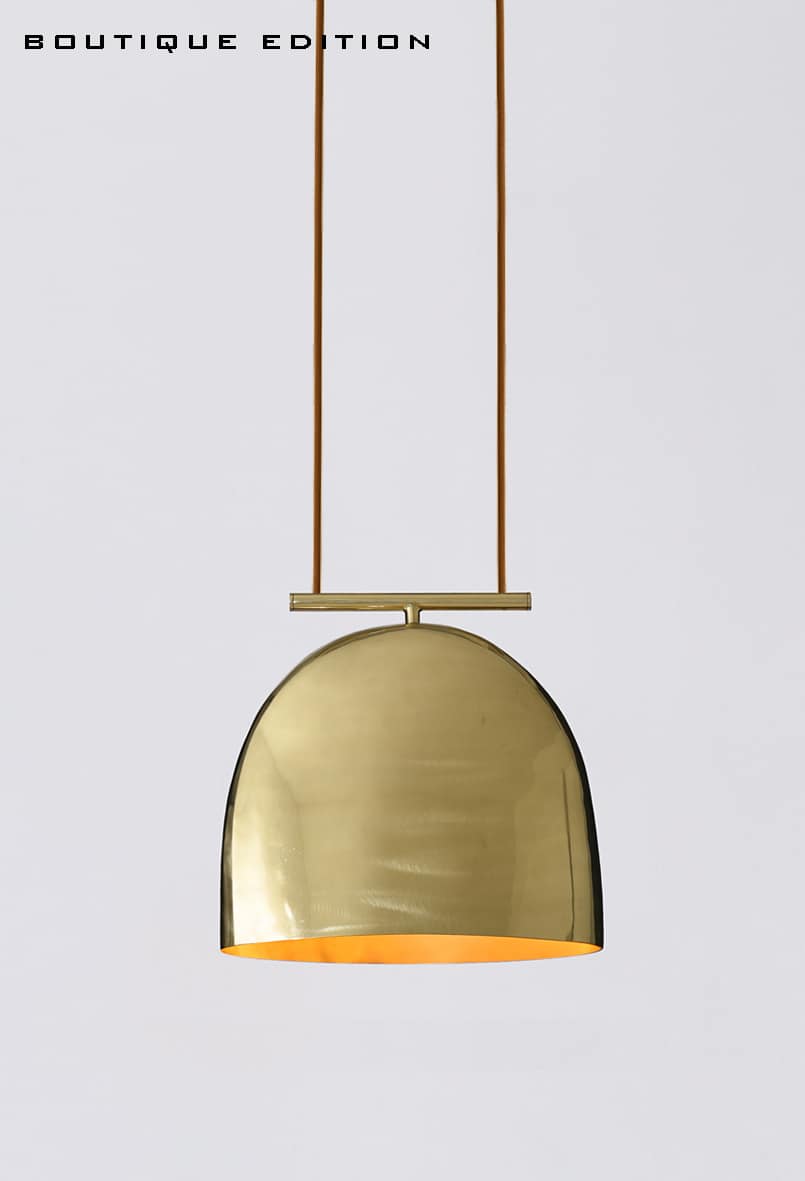 This pendant lamp is absolutely stunning! It’s made of polished brass plate and suspended by a gold fabric cable. The outer surface is absolutely gorgeous, offering an alluring presentation, perfectly juxtaposed with the charming outer layer. This creates a beautiful contrast that will catch your eye. This pendant will look absolutely exquisite hanging above the dining table, either in a row or as a single light.