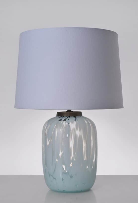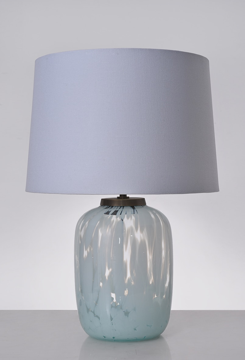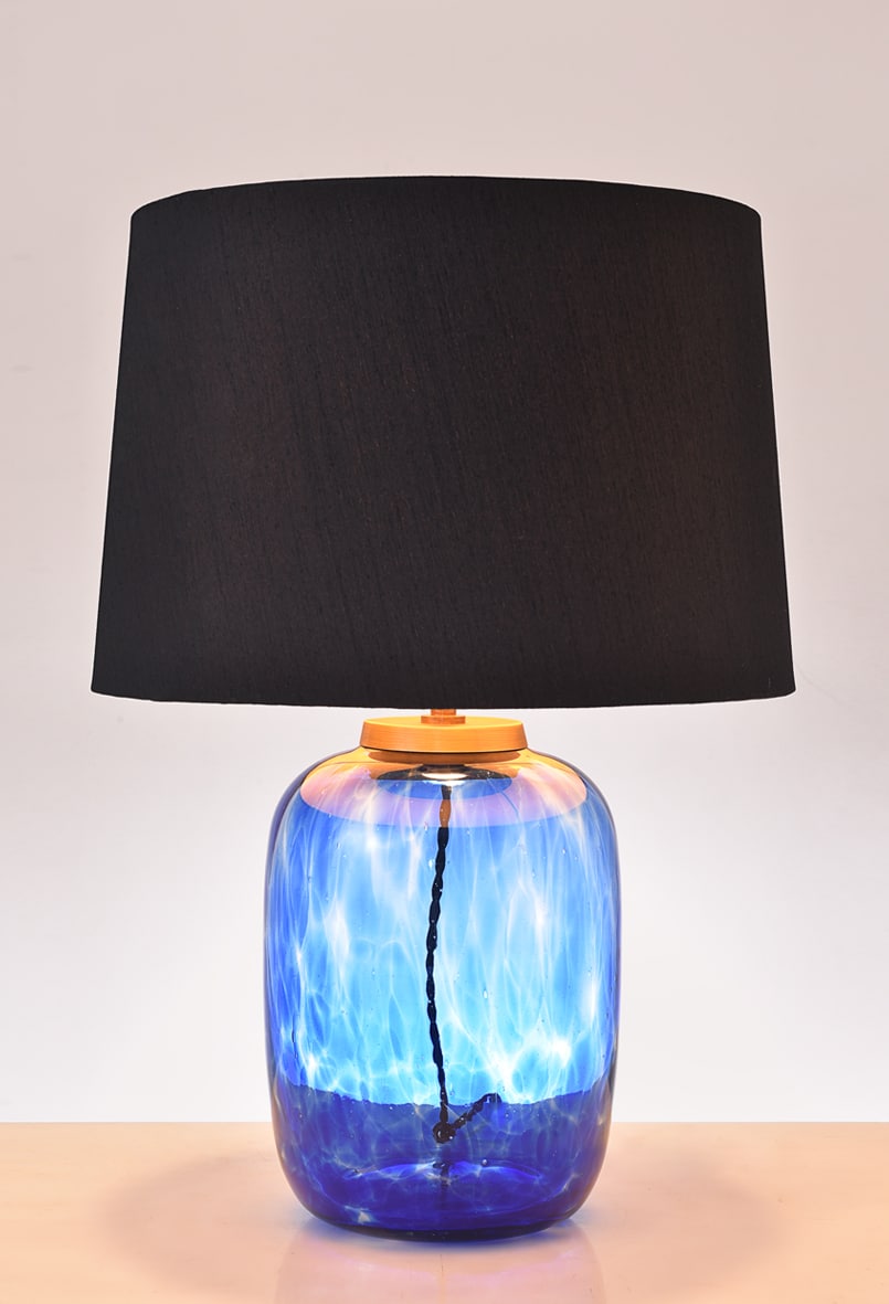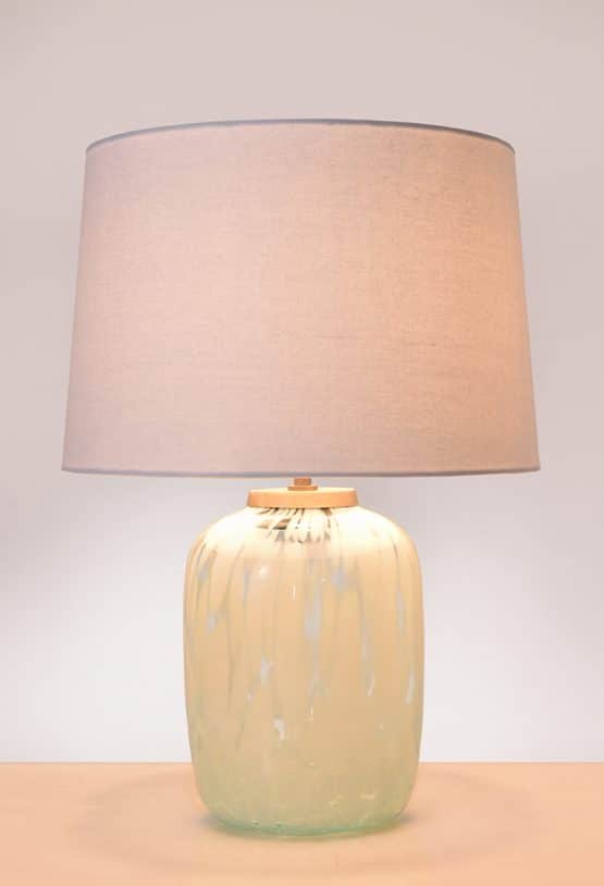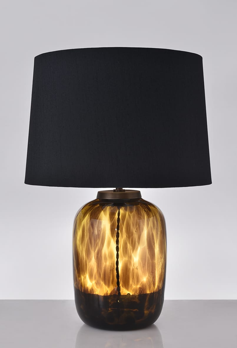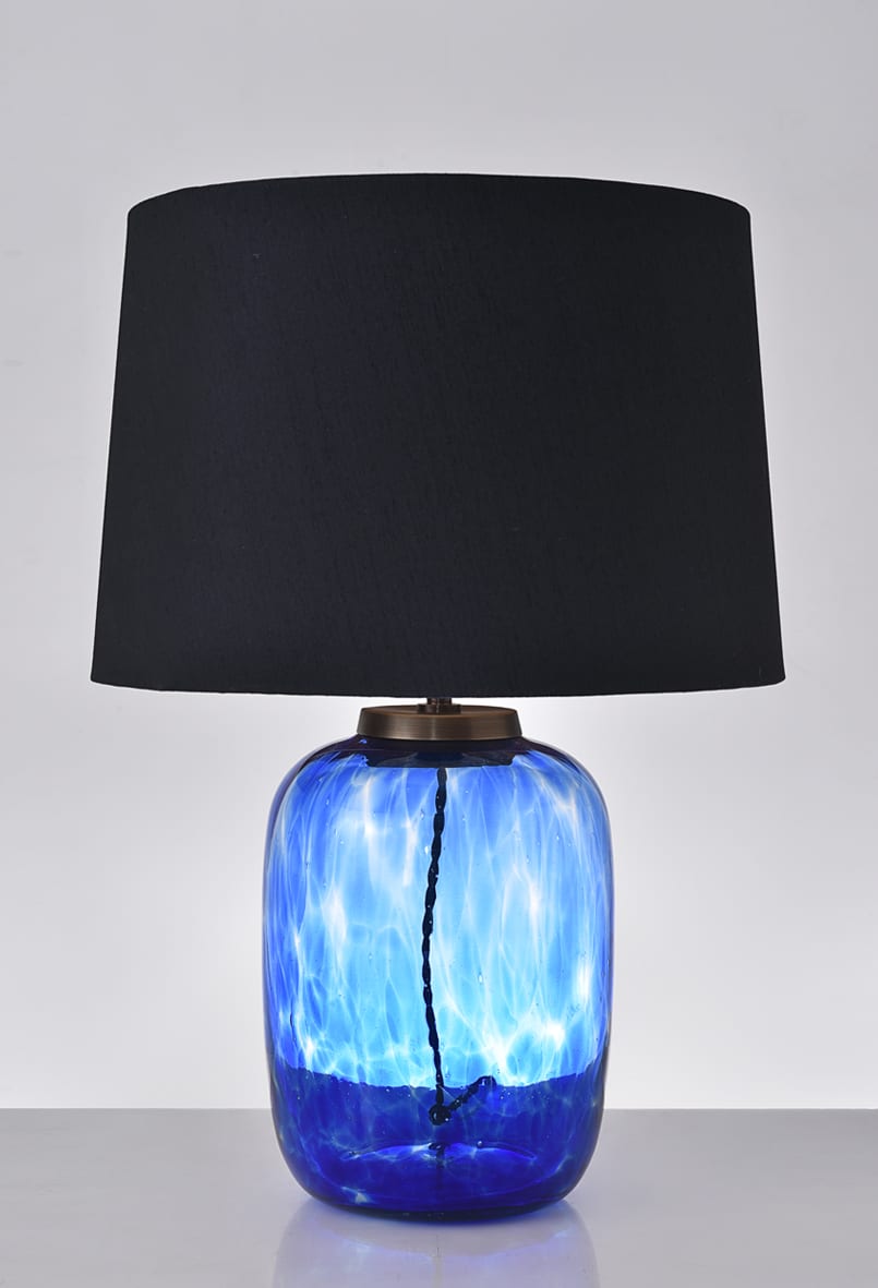 Take your space to new heights with the Ellis Table Lamp. Its simple elegance and luxurious glass jar stand, brass rim in antique gold finish, and a fabric shade in a matching color will elevate any room in your home. The unique glass finish on this lamp reflects light beautifully, emitting a mesmerizing glow that creates a warm and inviting atmosphere. This lamp is the perfect addition to any room in your home. Whether you place it on your bedside table, desk, or entryway console, it will effortlessly blend style and functionality.