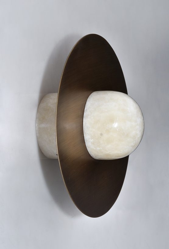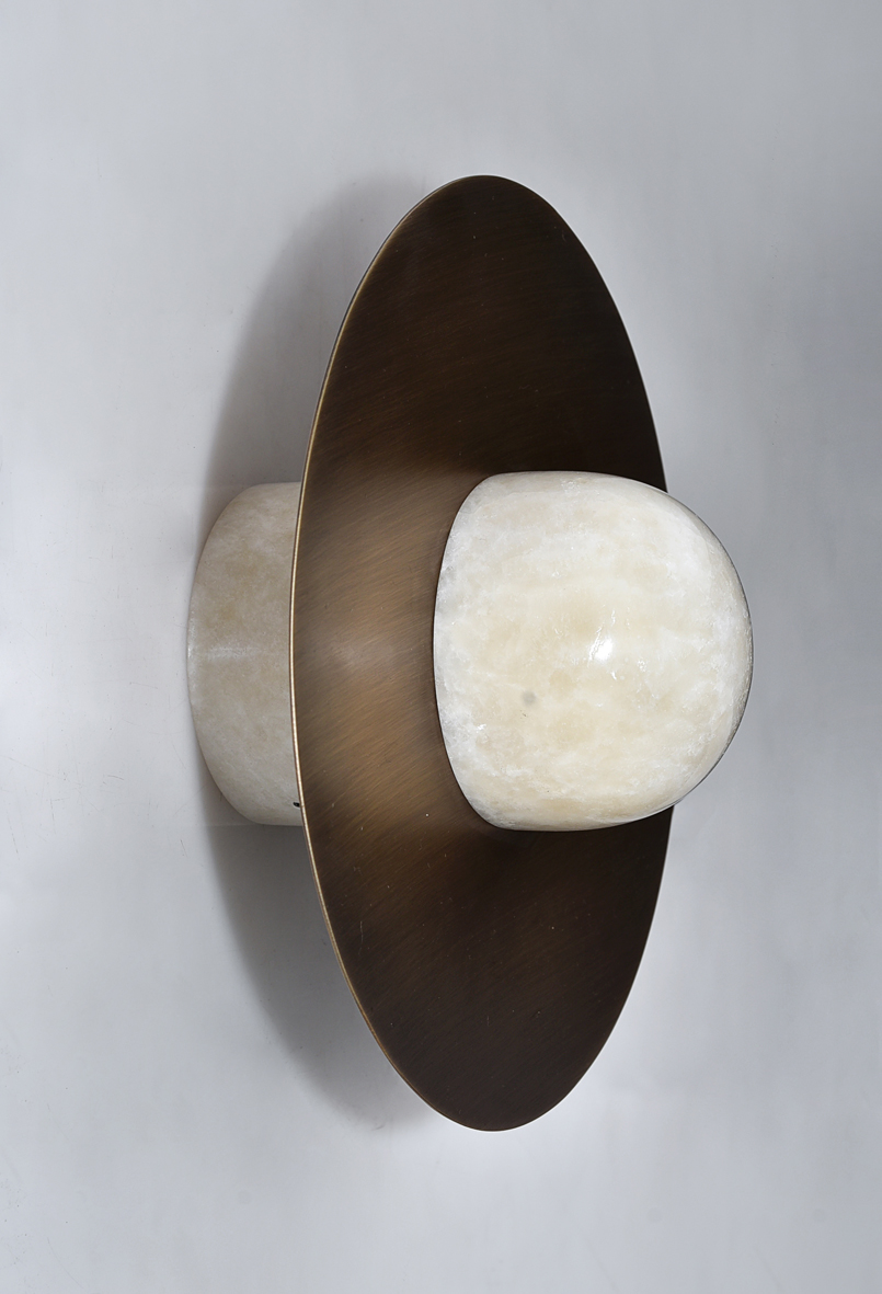 Bring warmth and elegance to your space with this stunning wall lamp crafted from natural onyx stone. When illuminated, the onyx beautifully reveals its unique natural patterns, creating a soft and inviting glow. Paired with a sleek brass backplate, the design adds a luxurious and modern touch, making it a striking accent for living rooms, hallways, or bedrooms.