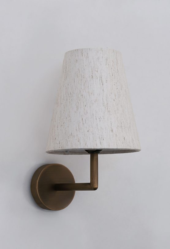 This Beta wall sconce features a brass arm, paired with a linen lampshade that softly diffuses warm light to create a cozy and elegant atmosphere. Its timeless design makes it a versatile addition to various interior styles. Perfect for placement along hallways, hotel lobbies, and bedrooms, it provides both functional lighting and a refined decorative touch.